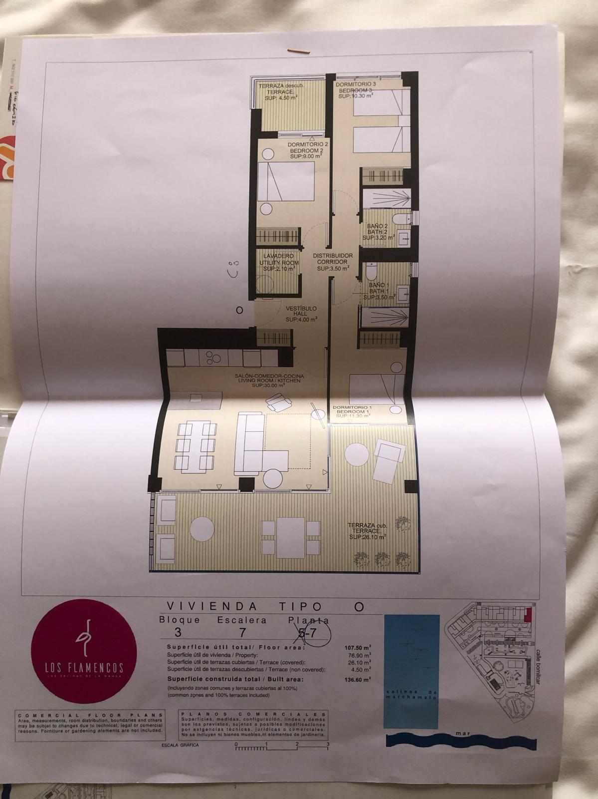 Este estupendo piso en venta se encuentra en la zona de Playa Paraíso-Playa Honda en Cartagena. Se ubica en la segunda planta, cuenta con una superficie total de 101 m² y una superficie útil de 85 m². Dispone de 2 habitaciones dobles, 2 baños, aire acondicionado, armarios empotrados, ascensor, calefacción eléctrica y cocina equipada. El edificio tiene menos de 5 años de antigüedad y ofrece servicios como parking, jardín comunitario, piscina comunitaria, Spa, gimnasio, mirador a las salinas, varias zonas comunes portero automático y seguridad con puerta blindada. Además, la vivienda es muy soleada y tiene una terraza para disfrutar del clima mediterráneo. Con orientación norte, suelos de gres, doble acristalamiento y un nivel energético clasificado como B en emisiones y C en consumo. Una oportunidad única para vivir en un entorno tranquilo cerca de la playa.